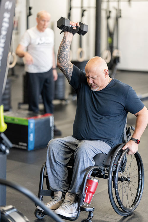 To begin helping individuals with disabilities, Snyder completed certification for adaptive and inclusive training through the Adaptive Training Academy, an organization established in 2012 by adaptive fitness community leaders. Training people who have limited mobility, are recovering from a stroke, have chronic health conditions or have spinal cord injuries takes some thought, Snyder says, but it isn’t as difficult as he feared it would be.